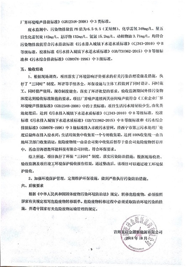 根據中華人民共和國國務院令第253號《建設項目環(huán)境保護管理條例》(中華人民共和國國務院令第682號《國務院關于修改〈建設項目環(huán)境保護管理條例〉的決定》和《建設項目竣工環(huán)境保護驗收暫行辦法》,嚴格依照有關法律法規(guī),建設項目環(huán)境保護設施驗收技術規(guī)范,本項目環(huán)評報告表和環(huán)保審批部門審批意見以及企業(yè)自行驗收相關要求等對本項目進行驗收,本項目符合環(huán)保驗收條件,可以通過環(huán)保驗收。 現(xiàn)將本項目竣工環(huán)境保護驗收情況進行公開,并征求公眾意見。一、征求意見日期:自公示之日起20個工作日 二、征求意見期間,驗收組接受反映公示的建設項目竣工環(huán)境保護驗收情況和問題的來信、來訪和來電。 三、聯(lián)系方式 聯(lián)系人:張工 電 話:15297122093 通訊地址:青海省西寧市城北區(qū)經四路創(chuàng)新創(chuàng)業(yè)大廈22號