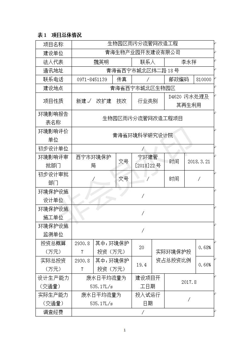生物園區(qū)雨污分流管網(wǎng)改造工程竣工環(huán)境保護驗收調(diào)查表 公示發(fā)布日期:(2018-12-21) 點擊次數(shù):2800 |