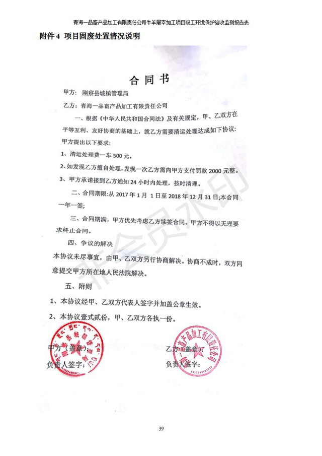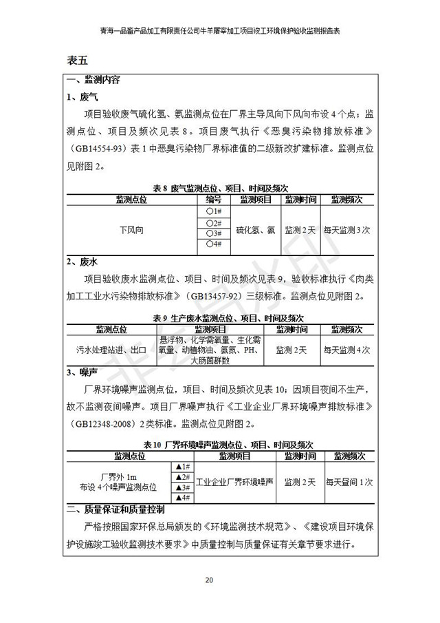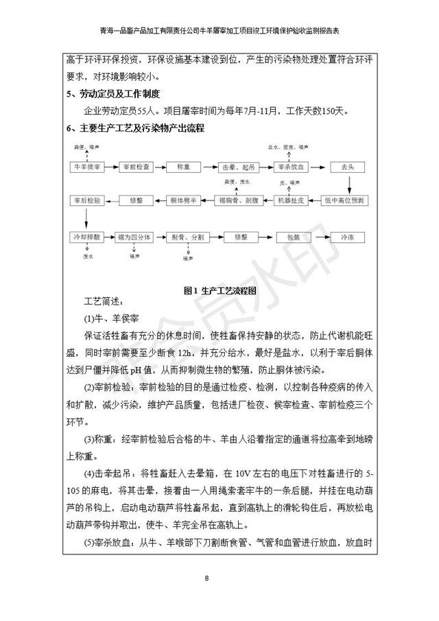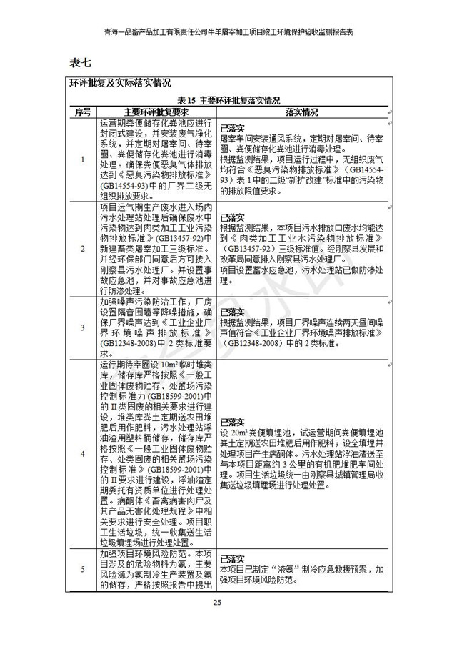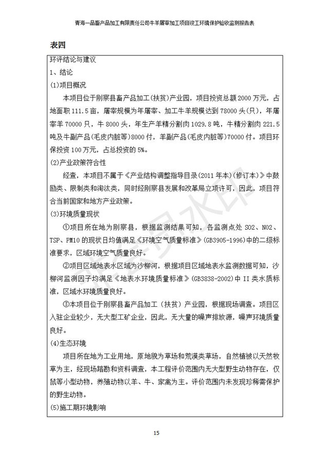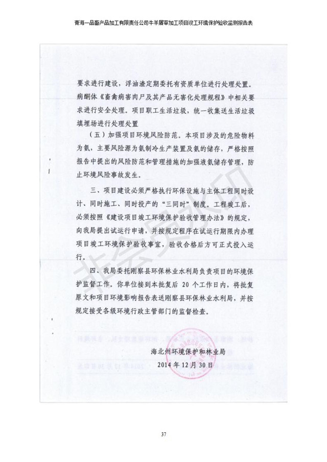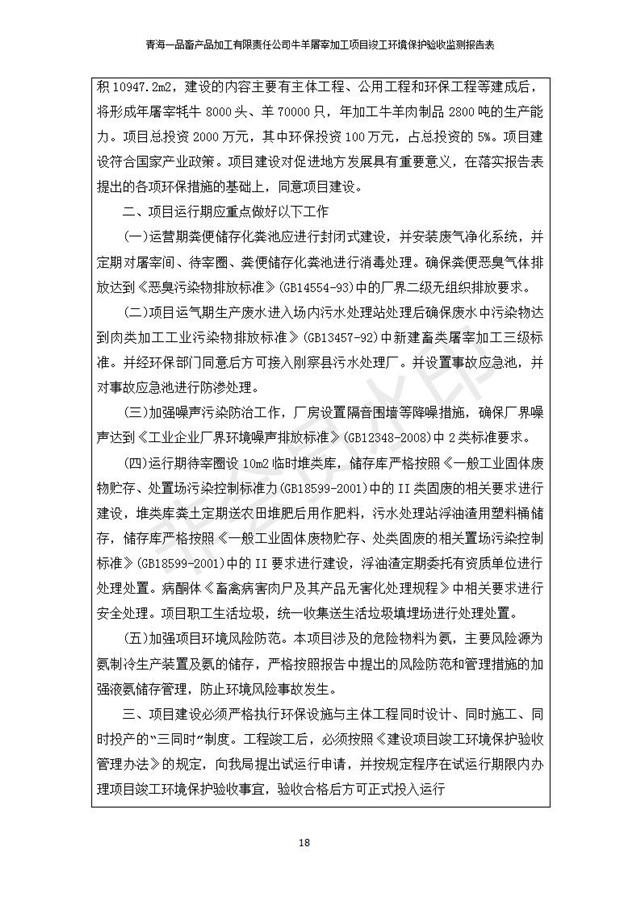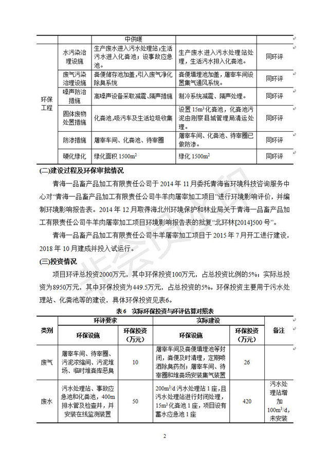 根據(jù)中華人民共和國國務(wù)院令第682號《國務(wù)院關(guān)于修改〈建設(shè)項(xiàng)目環(huán)境保護(hù)管理?xiàng)l例〉的決定》和《建設(shè)項(xiàng)目竣工環(huán)境保護(hù)驗(yàn)收暫行辦法》(國務(wù)院令682號),青海一品畜產(chǎn)品加工有限責(zé)任公司牛羊屠宰加工項(xiàng)目(包括竣工環(huán)境保護(hù)驗(yàn)收監(jiān)測報(bào)告表和驗(yàn)收意見)公示如下。 一、項(xiàng)目名稱:青海一品畜產(chǎn)品加工有限責(zé)任公司牛羊屠宰加工項(xiàng)目竣工環(huán)境保護(hù)驗(yàn)收監(jiān)測報(bào)告表 二、地點(diǎn):剛察縣縣城東大街加油站東側(cè) 三、建設(shè)單位:青海一品畜產(chǎn)品加工有限責(zé)任公司 四、建設(shè)內(nèi)容:項(xiàng)目地面積17453m2,項(xiàng)目建設(shè)內(nèi)容包括牛羊屠宰車間、牛羊肉加工車間、冷庫、辦公區(qū)、污水處理站等。 五、聯(lián)系人:張工 七、公示時間:二〇一九年一月十一日至二〇一九年二月七日 公示期間,對上述公示內(nèi)容如有異議,請以書面形式反饋,個人須署真實(shí)姓名,單位須加蓋公章。