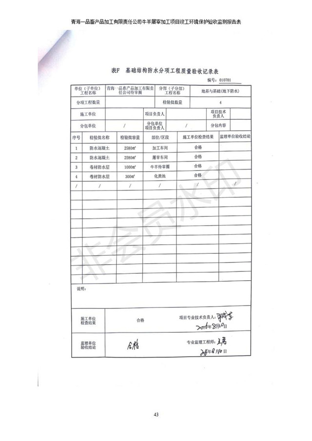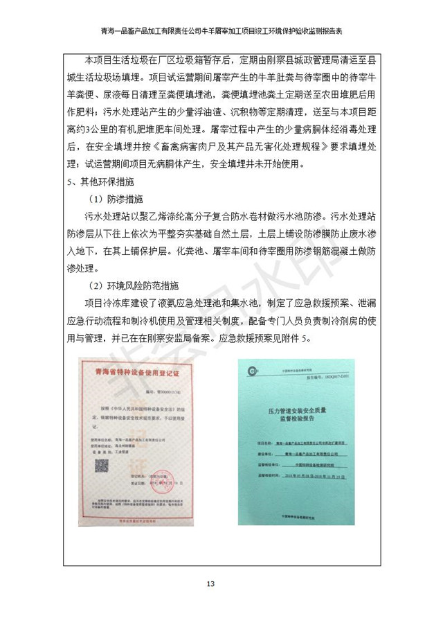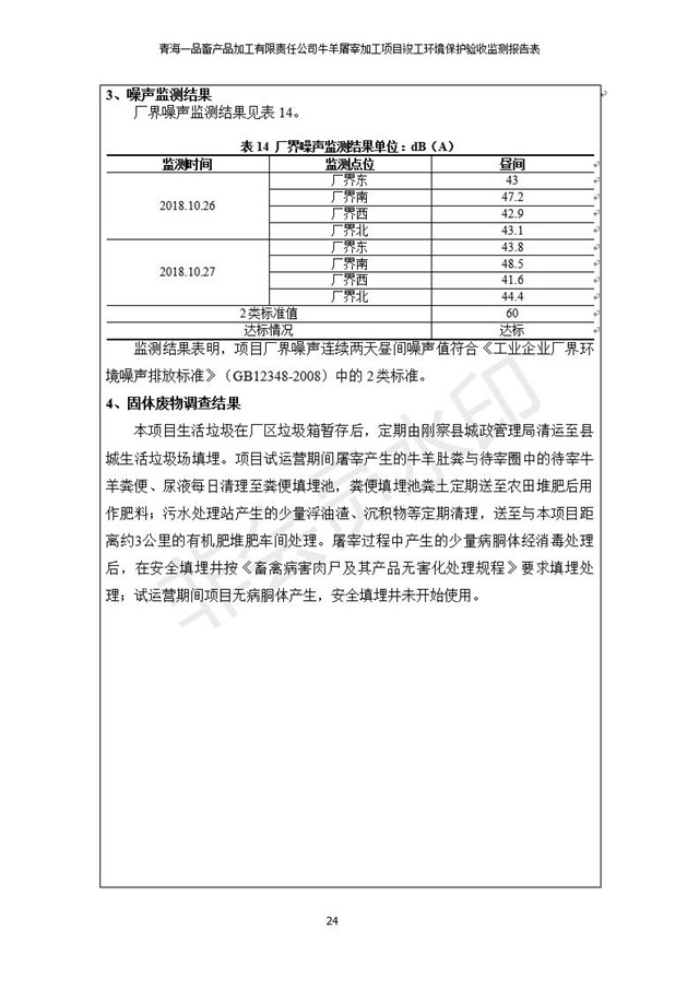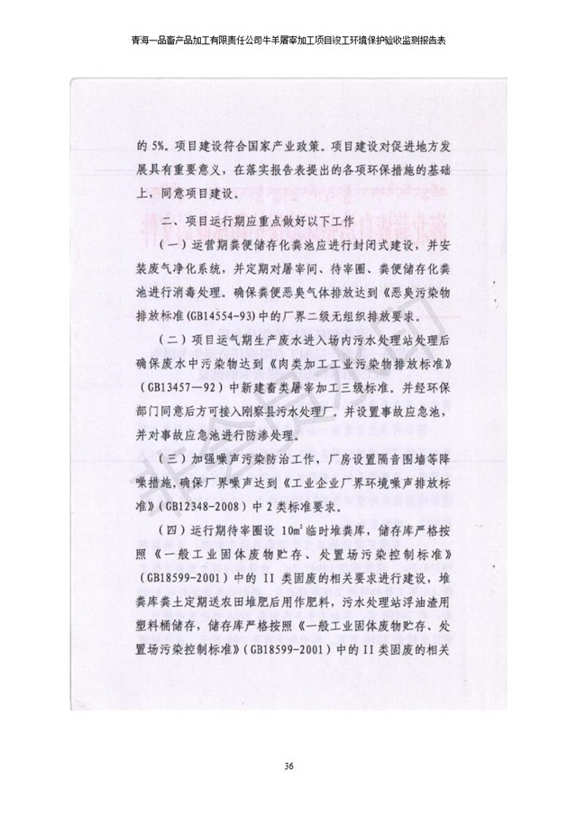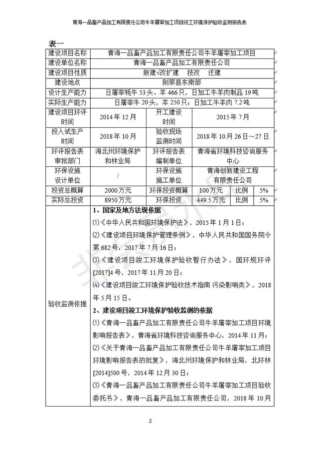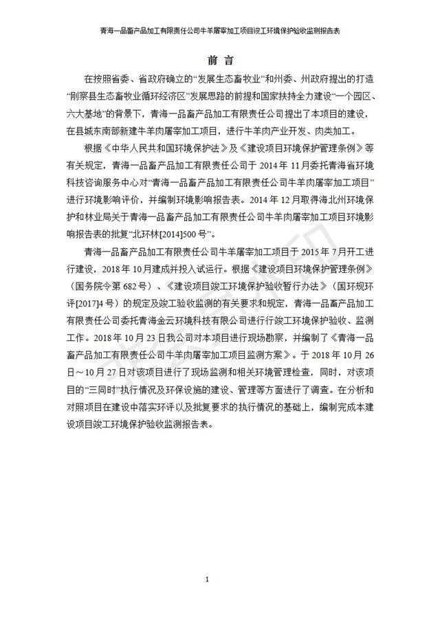 青海一品畜產(chǎn)品加工有限責(zé)任公司牛羊屠宰加工項(xiàng)目 竣工環(huán)境保護(hù)驗(yàn)收監(jiān)測報(bào)告表公示發(fā)布日期:(2019-1-11) 點(diǎn)擊次數(shù):3113 |