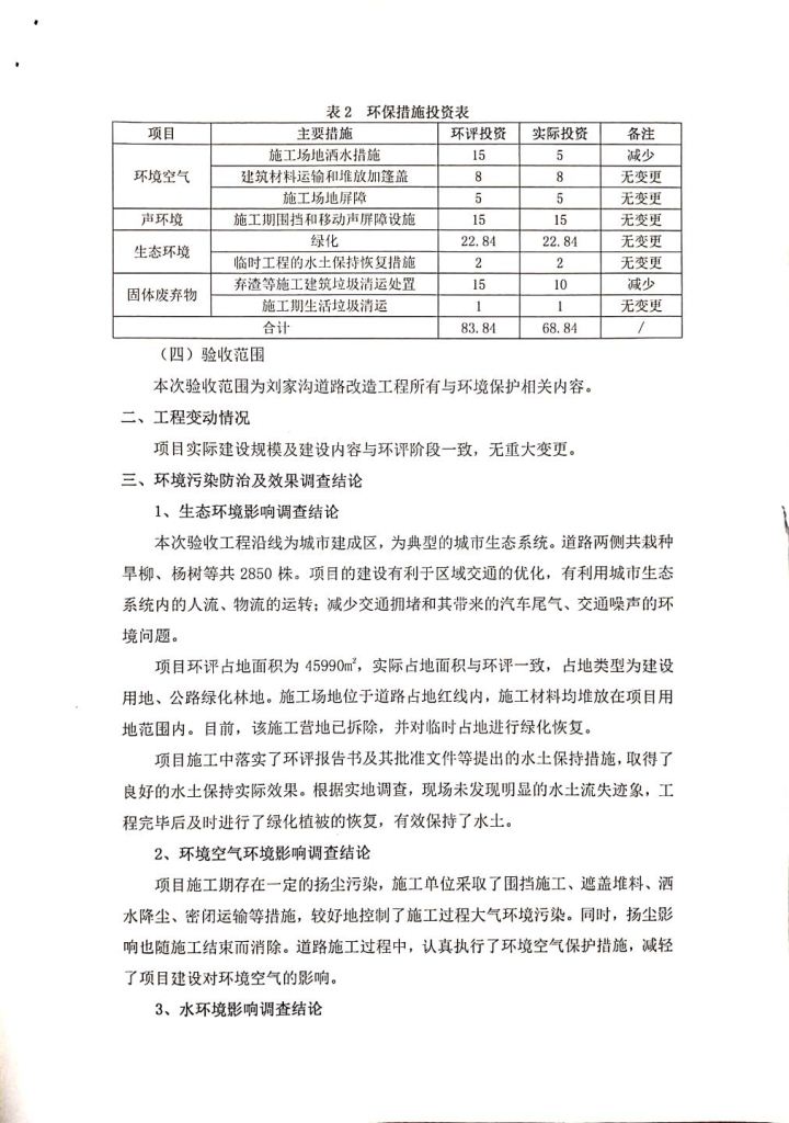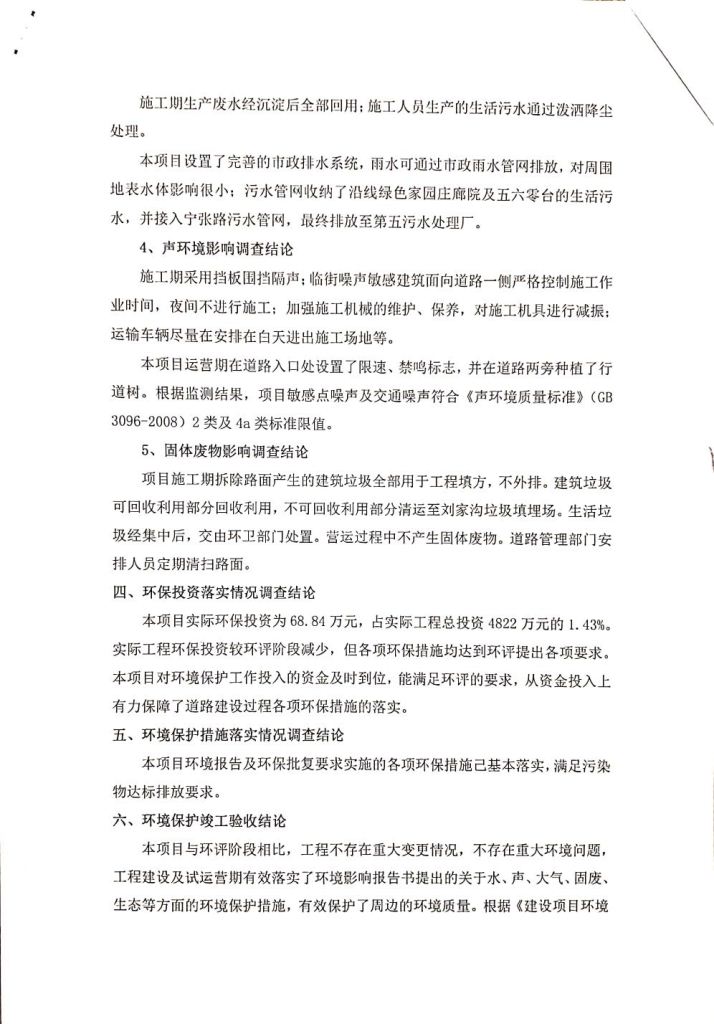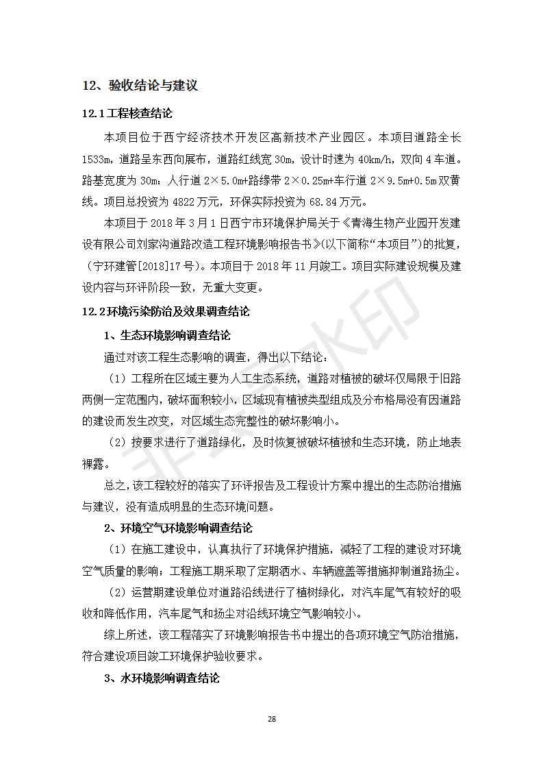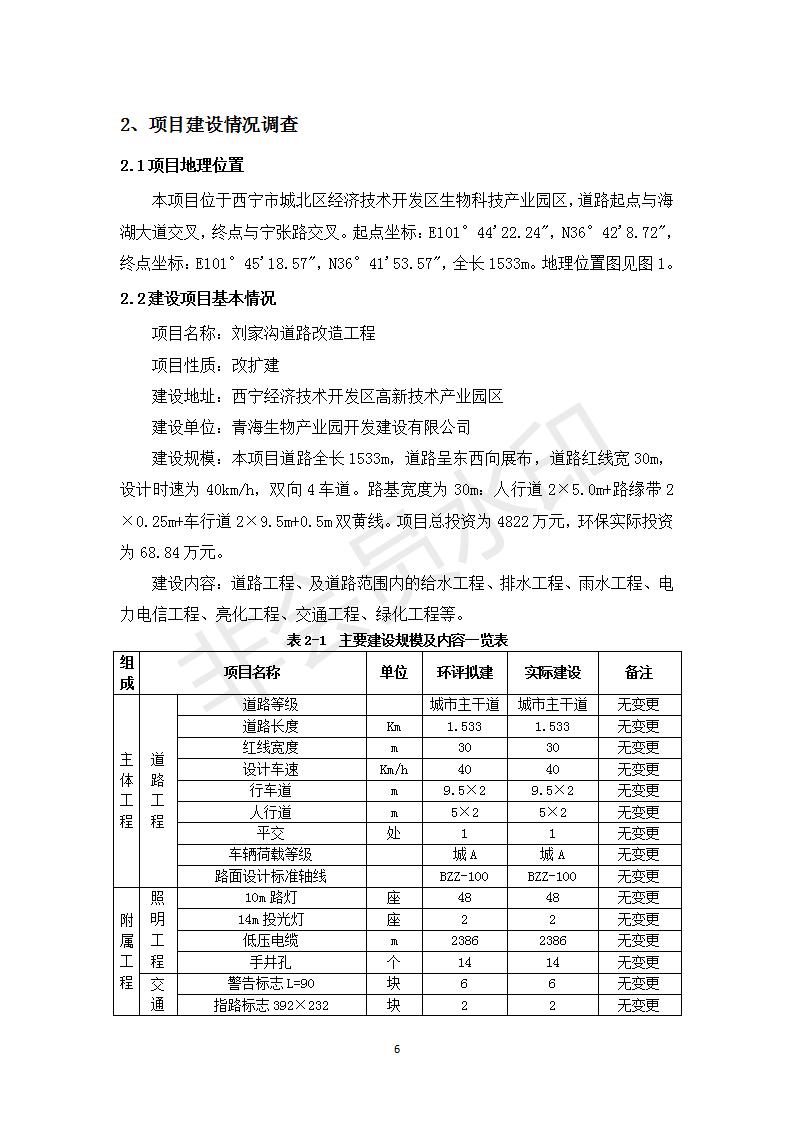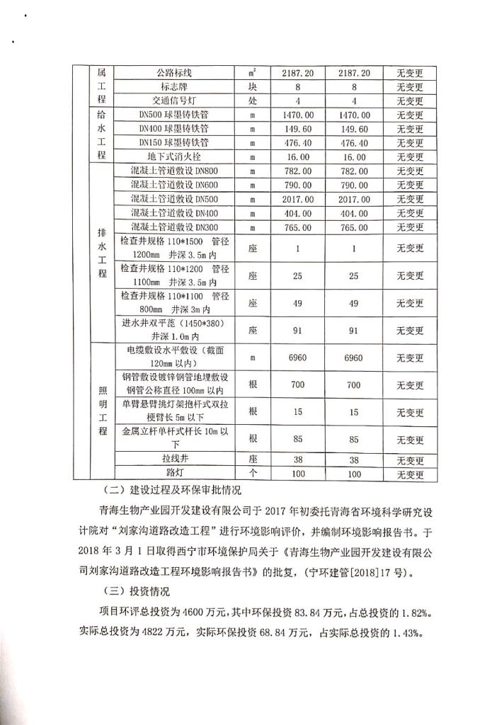 根據(jù)中華人民共和國務(wù)院令第682號(hào)《國務(wù)院關(guān)于修改〈建設(shè)項(xiàng)目環(huán)境保護(hù)管理?xiàng)l例〉的決定》和《建設(shè)項(xiàng)目竣工環(huán)境保護(hù)驗(yàn)收暫行辦法》(國務(wù)院令682號(hào)),劉家溝道路改造工程竣工環(huán)境保護(hù)驗(yàn)收內(nèi)容(包括竣工環(huán)境保護(hù)驗(yàn)收調(diào)查報(bào)告和驗(yàn)收意見)公示如下: 一、項(xiàng)目名稱:劉家溝道路改造工程 二、地點(diǎn):青海省西寧市城北區(qū)生物園區(qū) 三、建設(shè)單位:生物產(chǎn)業(yè)園開發(fā)建設(shè)有限公司 四、建設(shè)內(nèi)容:劉家溝道路經(jīng)改造后全長1533m,道路呈東西向展布,道路紅線為30m。設(shè)計(jì)時(shí)速為40km/h,雙向4車道。 五、公示時(shí)間:二〇一九年三月十四日至二〇一九年四月十一日 六、聯(lián)系人:張工 公示期間,對(duì)上述公示內(nèi)容如有異議,請(qǐng)以書面形式反饋,個(gè)人須署真實(shí)姓名,單位須加蓋公章。
