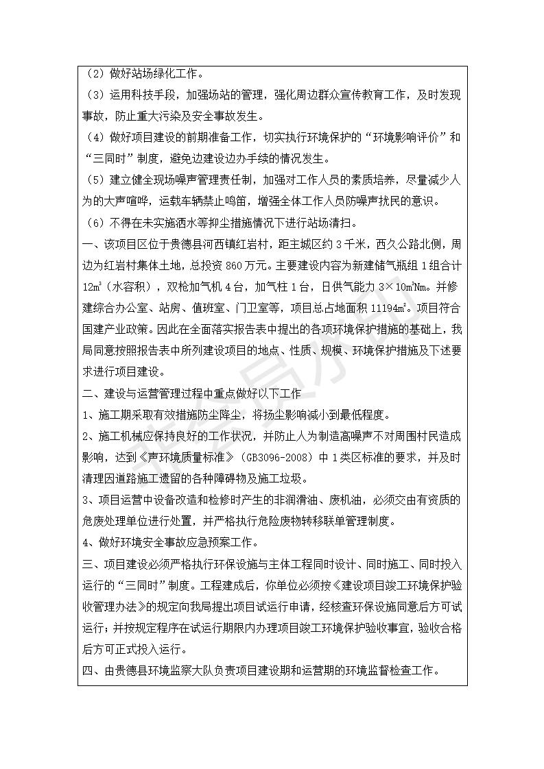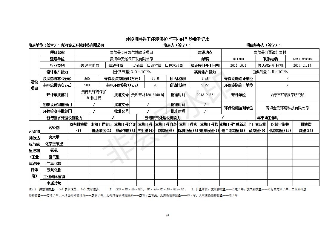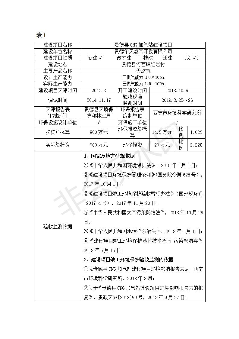 根據(jù)中華人民共和國務(wù)院令第682號《國務(wù)院關(guān)于修改〈建設(shè)項目環(huán)境保護管理條例〉的決定》和《建設(shè)項目竣工環(huán)境保護驗收暫行辦法》(國務(wù)院令682號),青藏高原特色生物資源綠色開發(fā)工程研究中心建設(shè)項目竣工環(huán)境保護驗收內(nèi)容(包括竣工環(huán)境保護驗收調(diào)查報告和驗收意見)公示如下: 一、項目名稱:貴德縣CNG加氣站建設(shè)項目 二、地點:貴德縣河西鎮(zhèn)紅巖村 三、建設(shè)單位:貴德華天燃氣開發(fā)有限公司 四、建設(shè)內(nèi)容:日供氣量為1.5×104Nm的加氣站 五、公示時間:二〇一九年五月二十九日至二〇一九年六月二十五日 六、聯(lián)系人:張工 公示期間,對上述公示內(nèi)容如有異議,請以書面形式反饋,個人須署真實姓名,單位須加蓋公章。