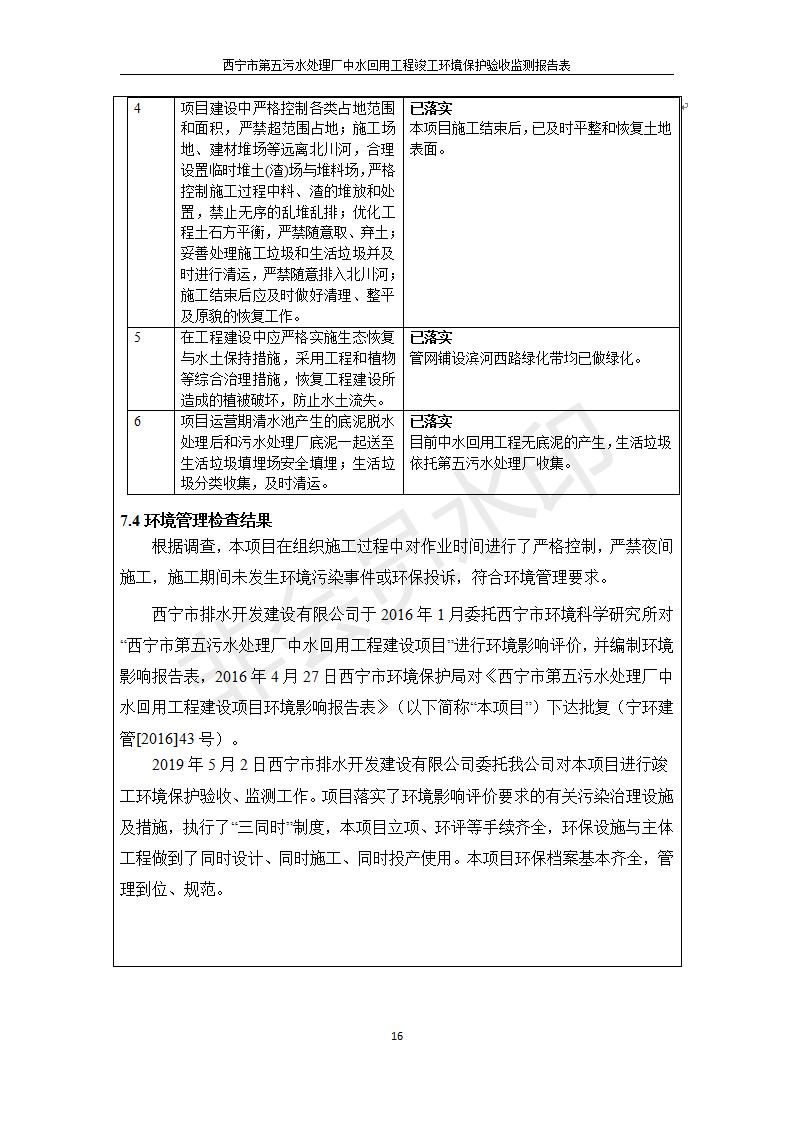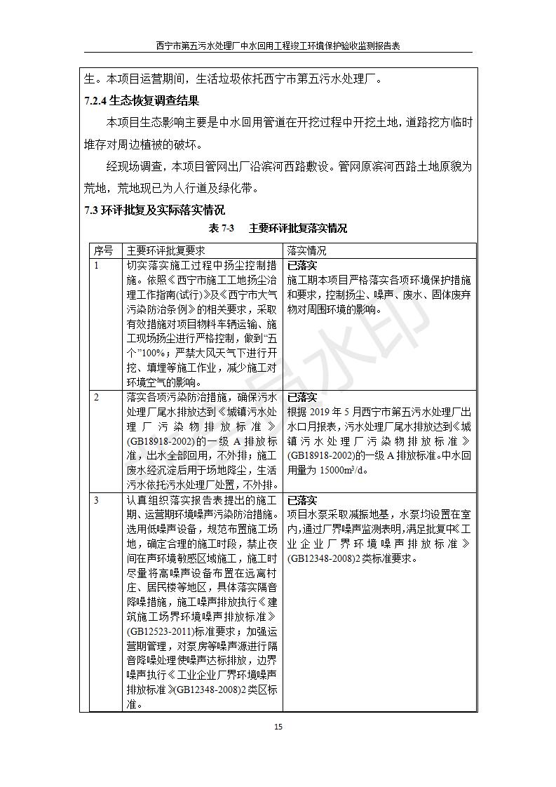 西寧市第五污水處理廠中水回用工程建設(shè)項(xiàng)目竣工環(huán)境保護(hù)驗(yàn)收監(jiān)測(cè)報(bào)告表公示發(fā)布日期:(2019-7-10) 點(diǎn)擊次數(shù):2385 |