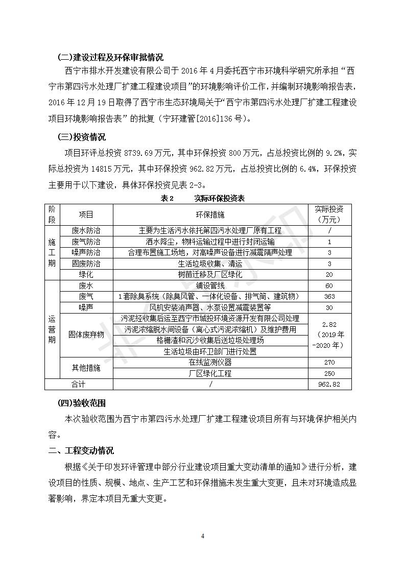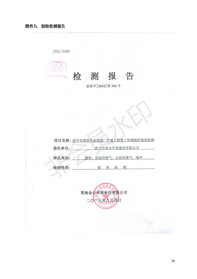根據(jù)中華人民共和國(guó)國(guó)務(wù)院令第682號(hào)《國(guó)務(wù)院關(guān)于修改〈建設(shè)項(xiàng)目環(huán)境保護(hù)管理?xiàng)l例〉的決定》和《建設(shè)項(xiàng)目竣工環(huán)境保護(hù)驗(yàn)收暫行辦法》(國(guó)務(wù)院令682號(hào)),西寧市第四污水處理廠擴(kuò)建工程建設(shè)項(xiàng)目(包括竣工環(huán)境保護(hù)驗(yàn)收監(jiān)測(cè)報(bào)告表和驗(yàn)收意見)公示如下。 一、項(xiàng)目名稱:西寧市第四污水處理廠擴(kuò)建工程建設(shè)項(xiàng)目 二、地點(diǎn):五四西路南側(cè),原西寧市第四污水處理廠西側(cè)用地 三、建設(shè)單位:西寧市排水開發(fā)建設(shè)有限公司 四、建設(shè)內(nèi)容:第四污水處理廠擴(kuò)建工程五、聯(lián)系人:張工 六、聯(lián)系電 話:0971-6515411 七、公示時(shí)間:二〇一九年九月十七日至二〇一九年十月十八日公示期間,對(duì)上述公示內(nèi)容如有異議,請(qǐng)以書面形式反饋,個(gè)人須署真實(shí)姓名,單位須加蓋公章。