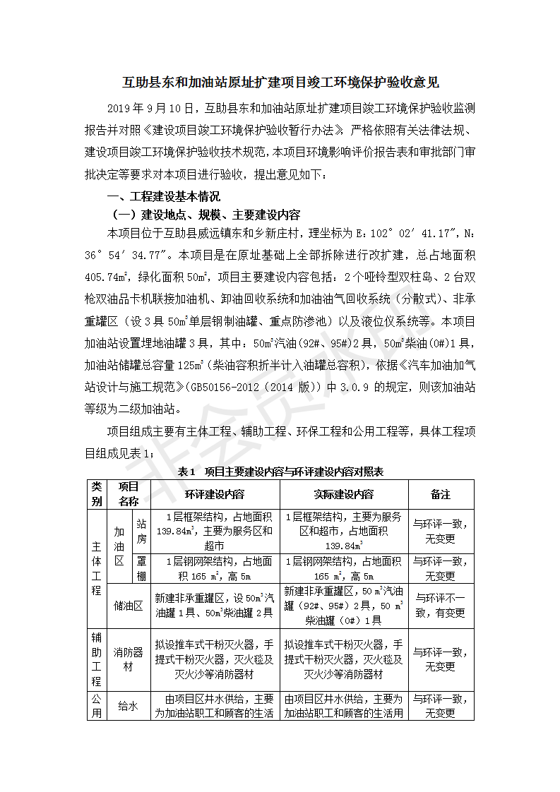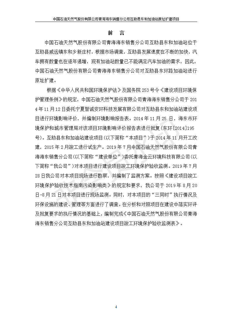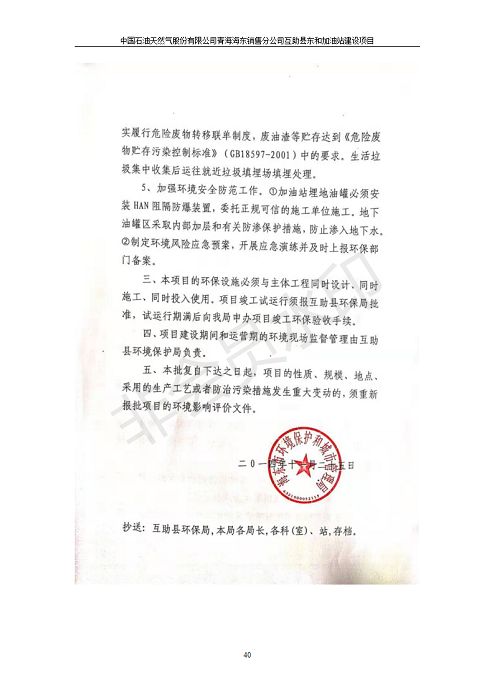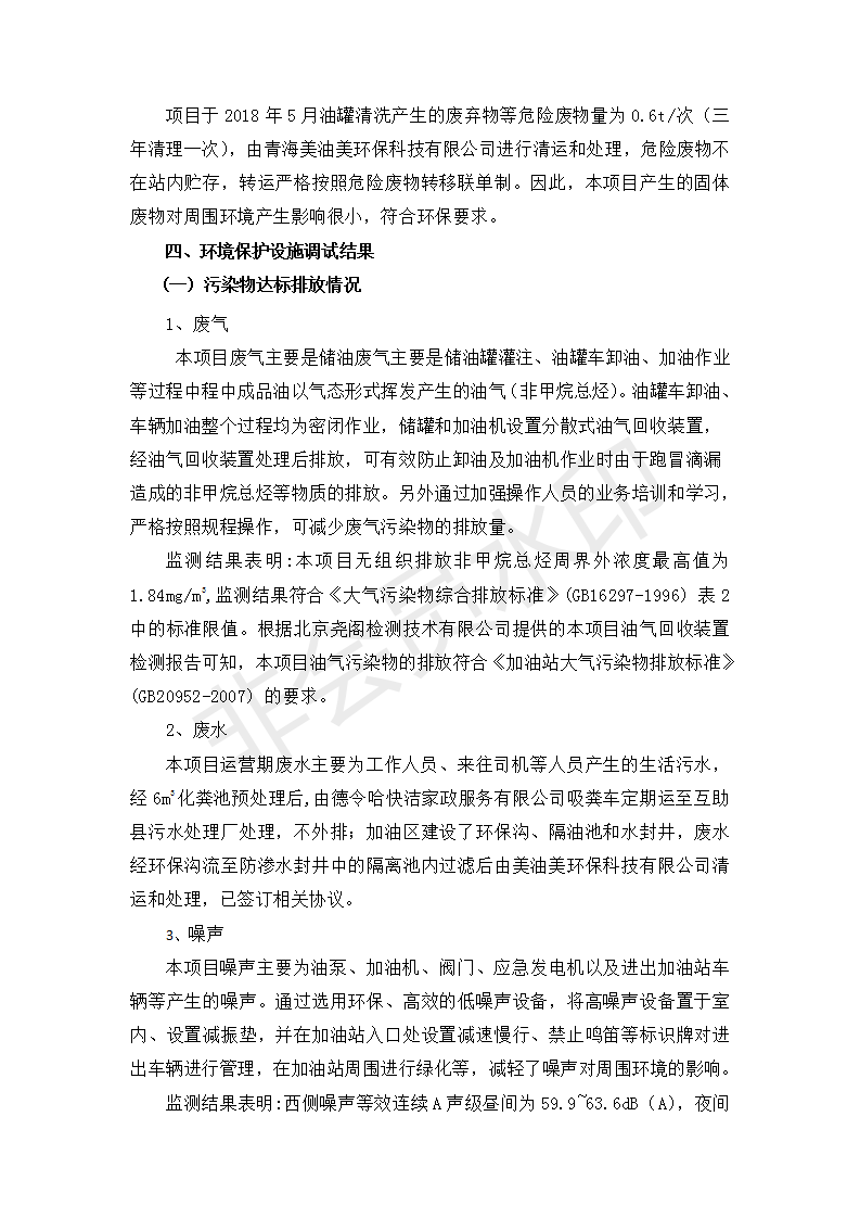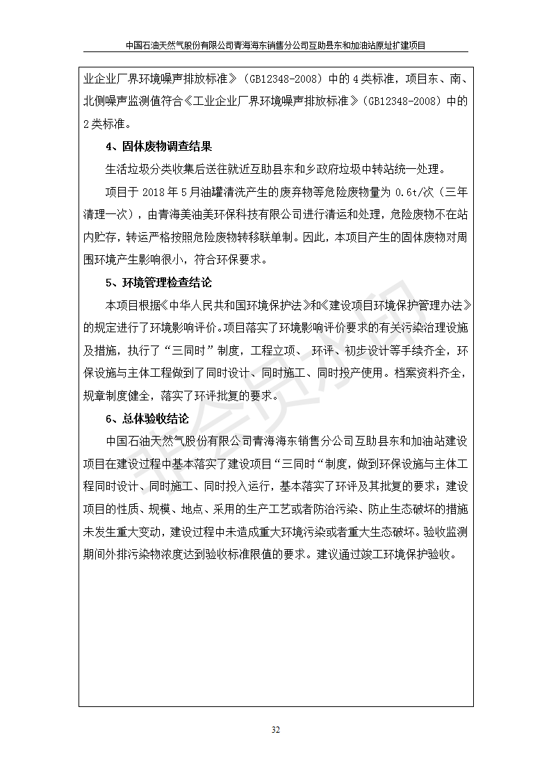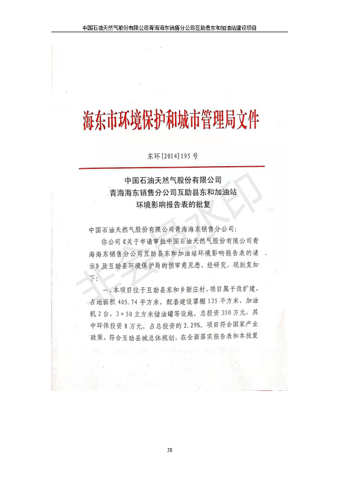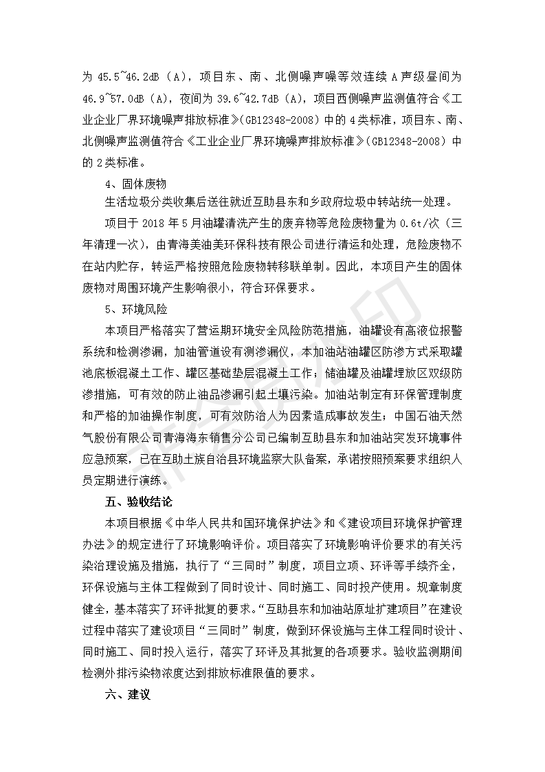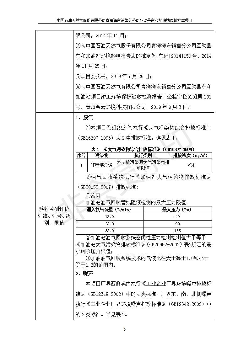 根據(jù)中華人民共和國國務(wù)院令第682號《國務(wù)院關(guān)于修改〈建設(shè)項目環(huán)境保護管理條例〉的決定》和《建設(shè)項目竣工環(huán)境保護驗收暫行辦法》(國務(wù)院令682號),互助縣東和加油站原址擴建項目(包括竣工環(huán)境保護驗收監(jiān)測報告表和驗收意見)公示如下。 一、項目名稱:互助縣東和加油站原址擴建項目 二、地點:互助縣威遠(yuǎn)鎮(zhèn)東和鄉(xiāng)新莊村 六、聯(lián)系電話:0971-6515411 七、公示時間:二〇一九年九月二十七日至二〇一九年十月二十九日 公示期間,對上述公示內(nèi)容如有異議,請以書面形式反饋,個人須署真實姓名,單位須加蓋公章。