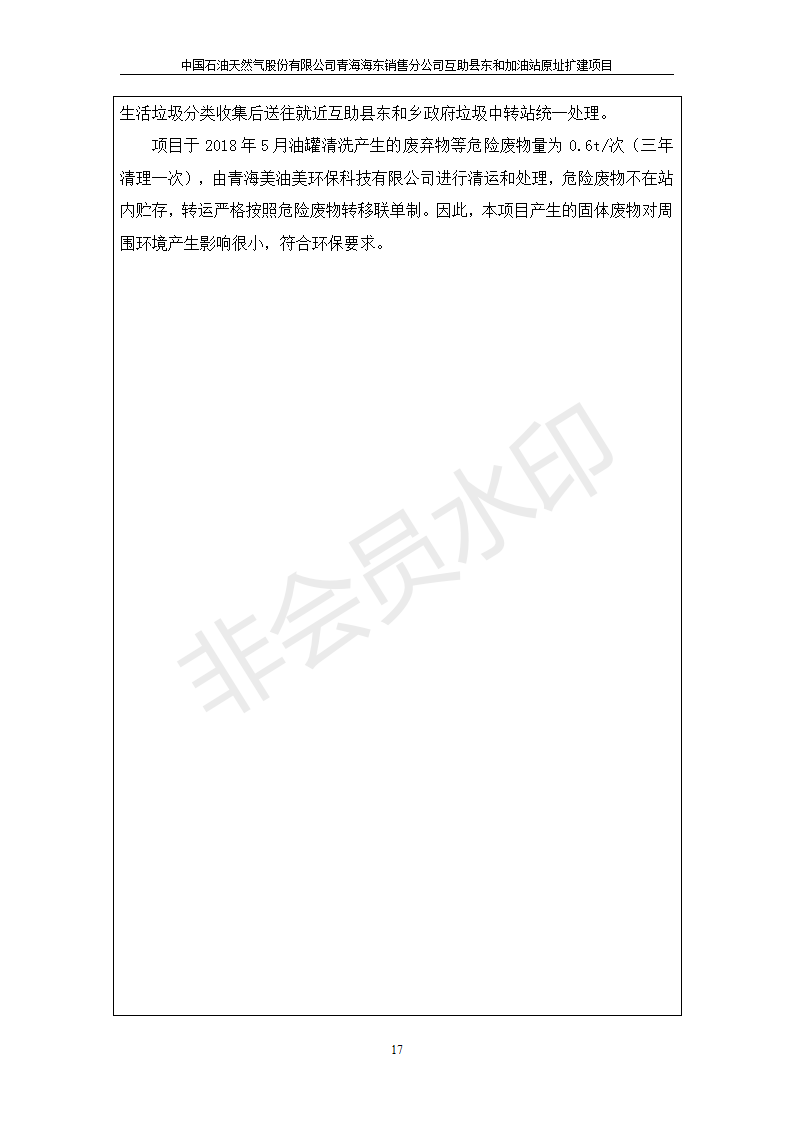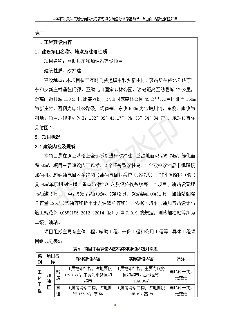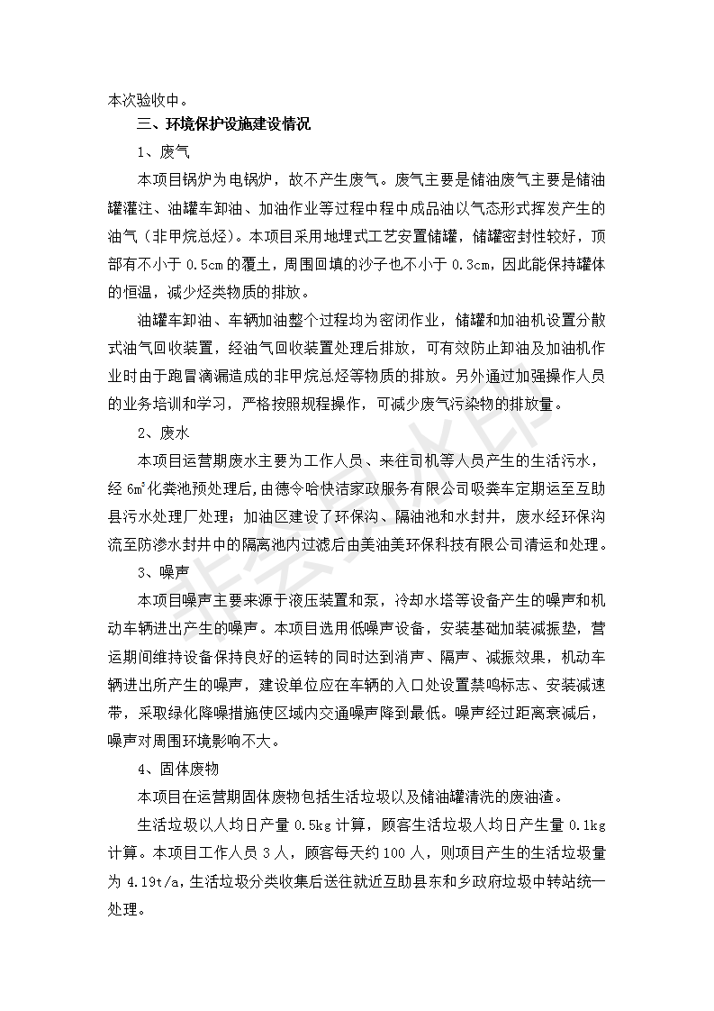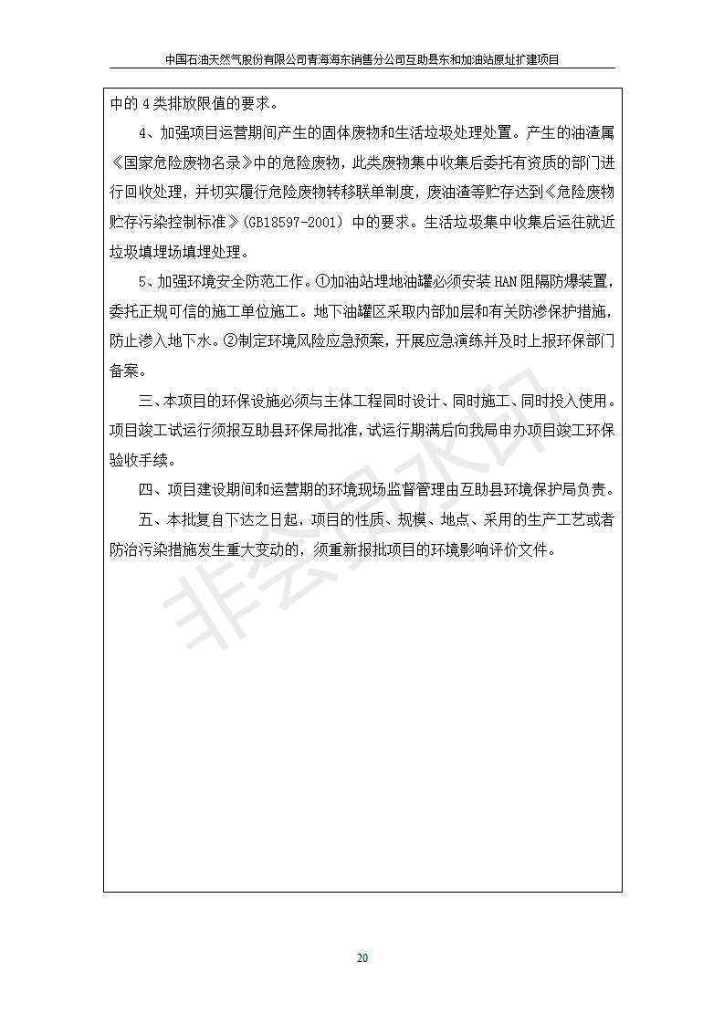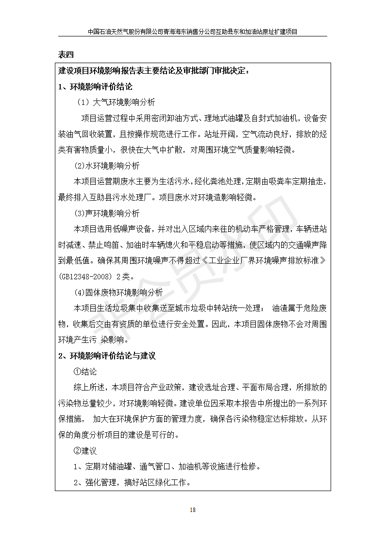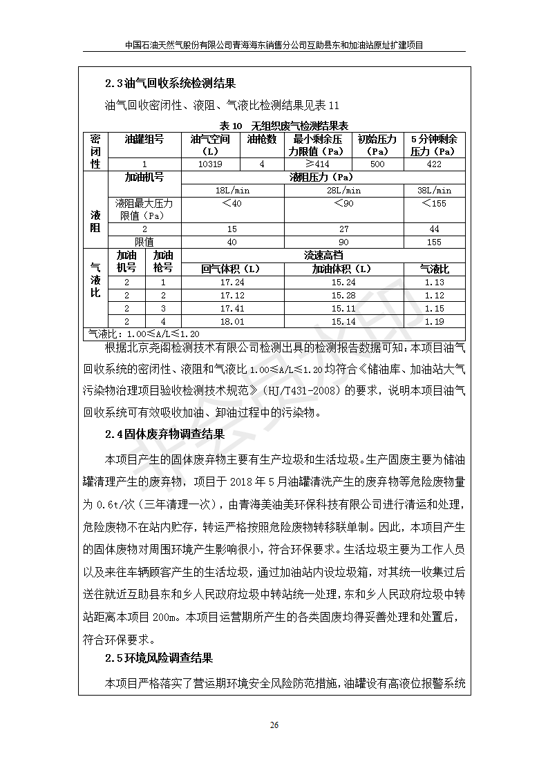 根據(jù)中華人民共和國國務(wù)院令第682號《國務(wù)院關(guān)于修改〈建設(shè)項目環(huán)境保護管理條例〉的決定》和《建設(shè)項目竣工環(huán)境保護驗收暫行辦法》(國務(wù)院令682號),互助縣東和加油站原址擴建項目(包括竣工環(huán)境保護驗收監(jiān)測報告表和驗收意見)公示如下。 一、項目名稱:互助縣東和加油站原址擴建項目 二、地點:互助縣威遠(yuǎn)鎮(zhèn)東和鄉(xiāng)新莊村 六、聯(lián)系電話:0971-6515411 七、公示時間:二〇一九年九月二十七日至二〇一九年十月二十九日 公示期間,對上述公示內(nèi)容如有異議,請以書面形式反饋,個人須署真實姓名,單位須加蓋公章。