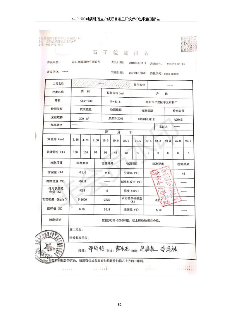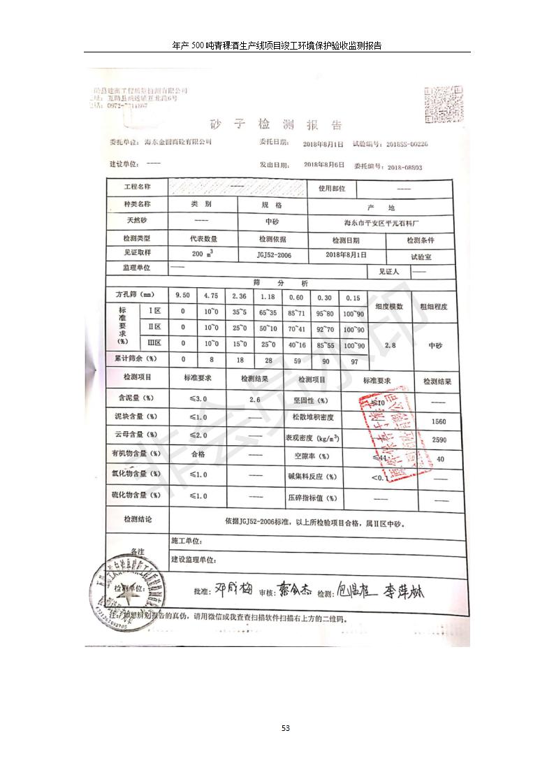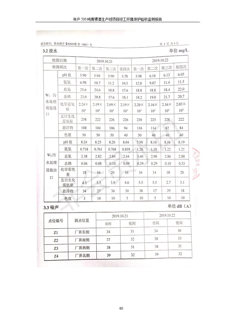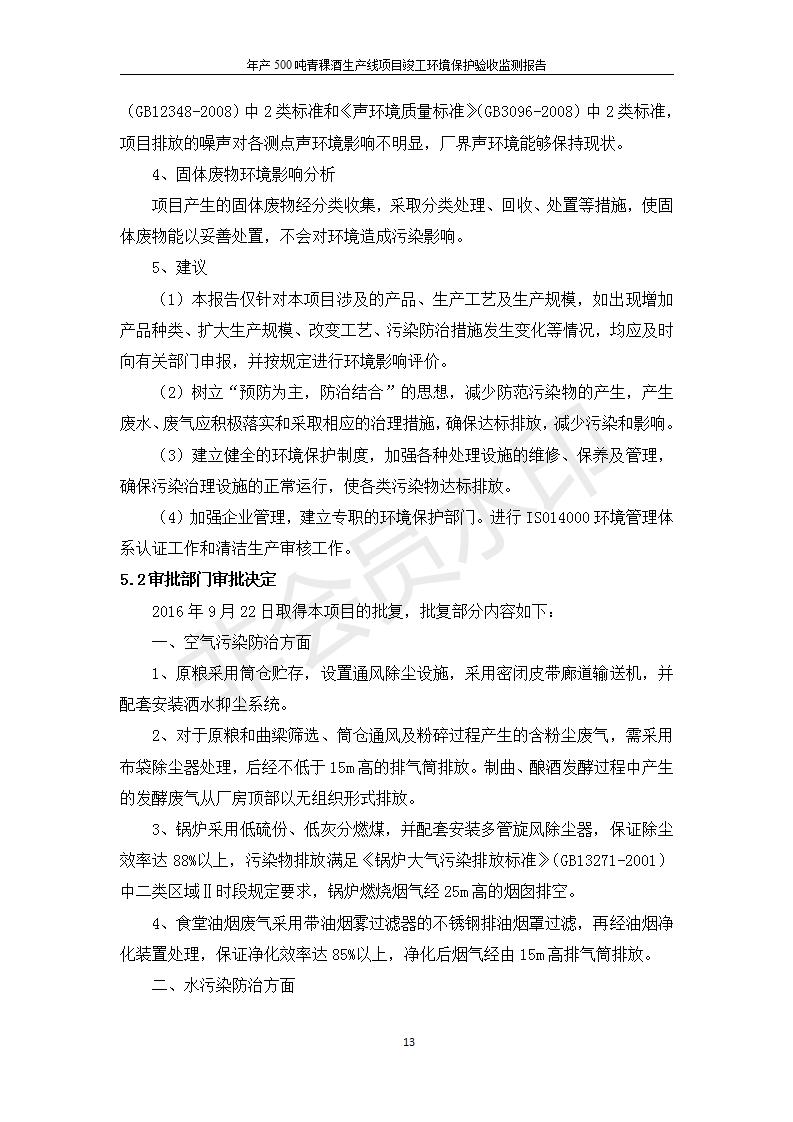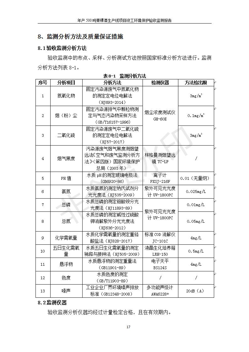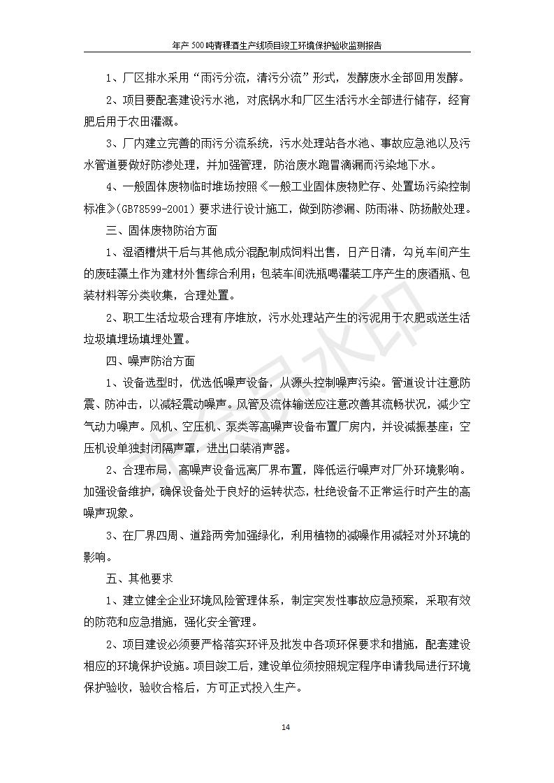 根據(jù)中華人民共和國國務(wù)院令第682號《國務(wù)院關(guān)于修改〈建設(shè)項(xiàng)目環(huán)境保護(hù)管理?xiàng)l例〉的決定》和《建設(shè)項(xiàng)目竣工環(huán)境保護(hù)驗(yàn)收暫行辦法》(國務(wù)院令682號),綜合檢測實(shí)驗(yàn)室建設(shè)項(xiàng)目(包括竣工環(huán)境保護(hù)驗(yàn)收監(jiān)測報(bào)告表和驗(yàn)收意見)公示如下。 一、項(xiàng)目名稱:青;ブ⑶囡茦I(yè)有限公司年產(chǎn)500噸青稞酒業(yè)生產(chǎn)線建設(shè)項(xiàng)目 二、地點(diǎn):青海省海東市互助土族自治縣臺子鄉(xiāng)河?xùn)|村198號
