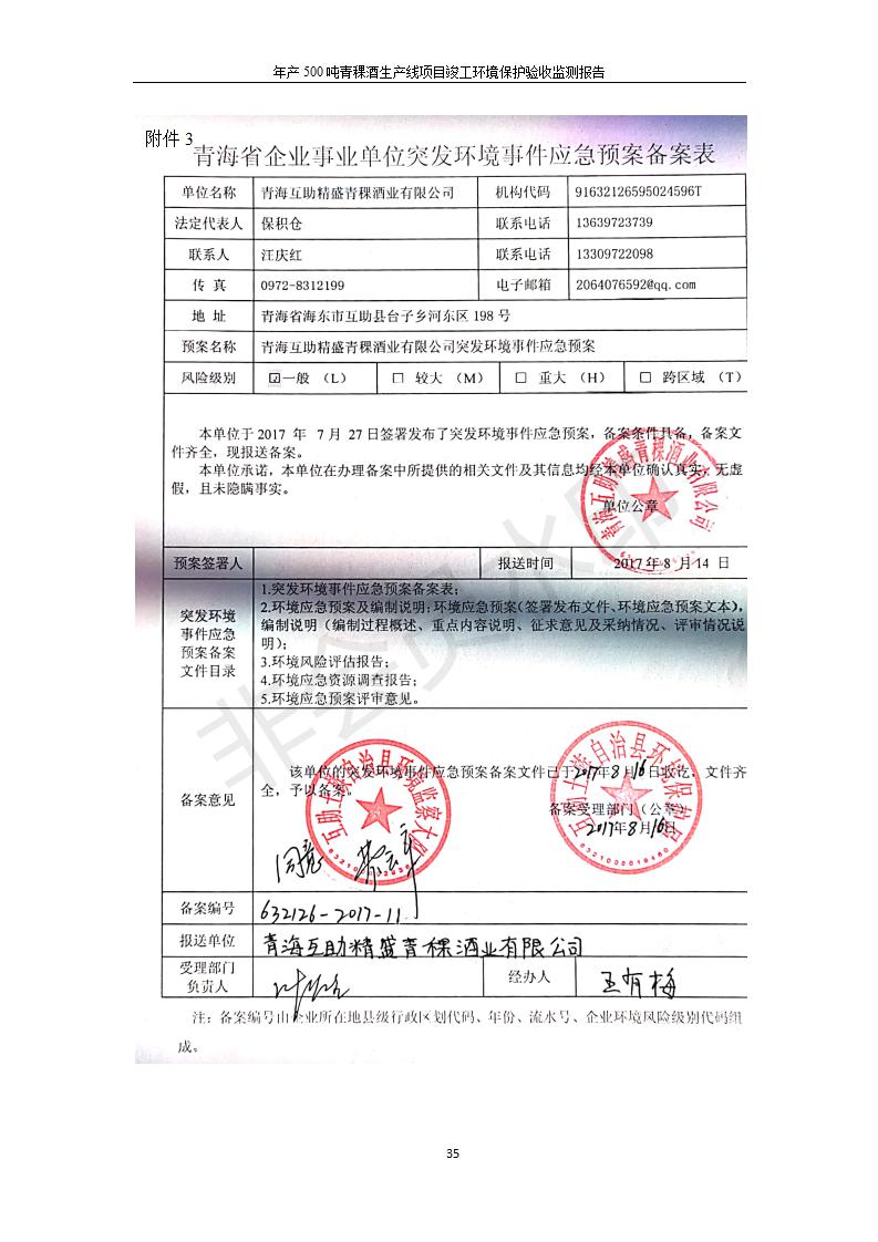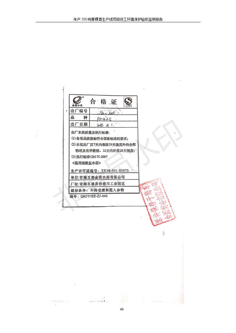 青;ブ⑶囡茦I(yè)有限公司年產(chǎn)500噸青稞酒業(yè)生產(chǎn)線建設(shè)項(xiàng)目竣工環(huán)境保護(hù)驗(yàn)收監(jiān)測報(bào)告表公示發(fā)布日期:(2020-4-27) 點(diǎn)擊次數(shù):2444 |