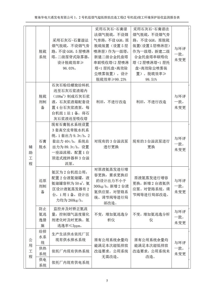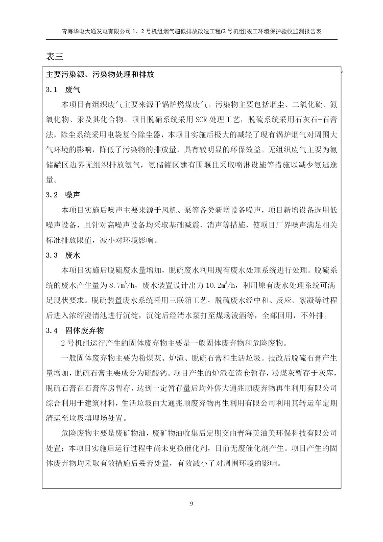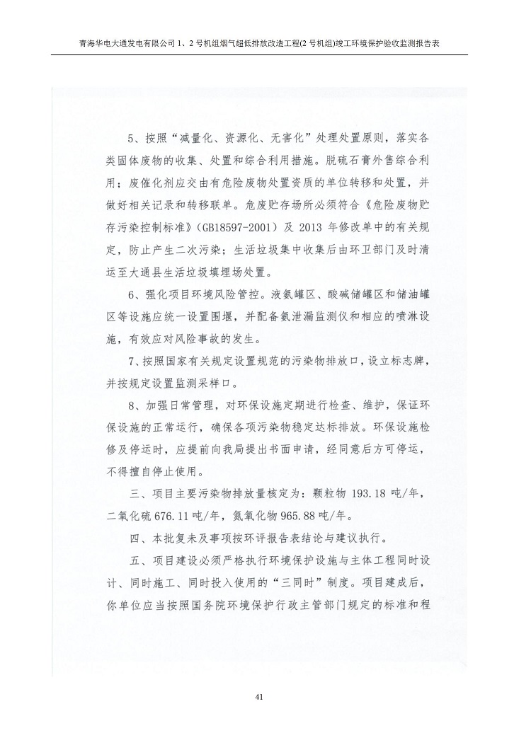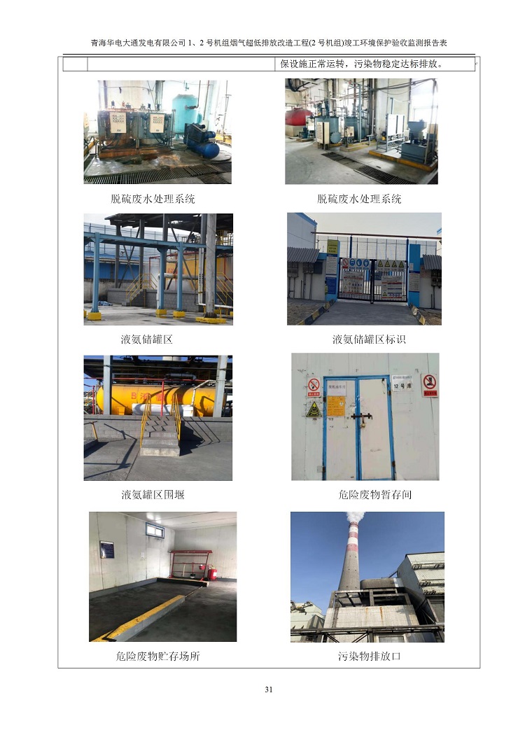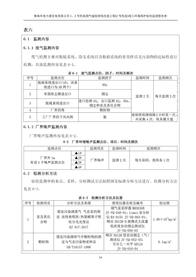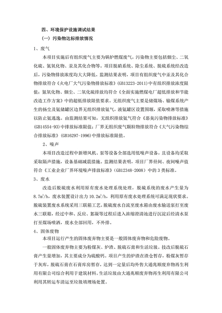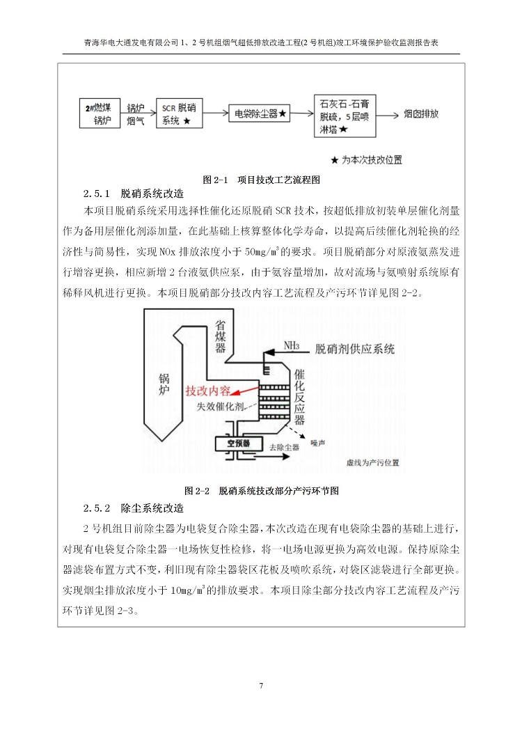 根據(jù)中華人民共和國國務(wù)院令第682號《國務(wù)院關(guān)于修改〈建設(shè)項目環(huán)境保護(hù)管理條例〉的決定》和《建設(shè)項目竣工環(huán)境保護(hù)驗收暫行辦法》(國務(wù)院令682號),青海華電大通發(fā)電有限公司1、2號機(jī)組煙氣超低排放改造工程(2號機(jī)組) (包括竣工環(huán)境保護(hù)驗收監(jiān)測報告表和驗收意見)公示如下。 一、項目名稱:青海華電大通發(fā)電有限公司1、2號機(jī)組煙氣超低排放改造工程(2號機(jī)組) 竣工環(huán)境保護(hù)驗收監(jiān)測報告表 二、地點(diǎn):青海省西寧市大通縣寧張公路31公里處 三、建設(shè)單位:青海華電大通發(fā)電有限公司 四、建設(shè)內(nèi)容:2號機(jī)組煙氣超低排放改造,2號機(jī)組改造內(nèi)容為脫硫系統(tǒng)保留原脫硫裝置作為一級塔,新建二級合金托盤塔串聯(lián)吸收塔;對原“1+2”電袋復(fù)合除塵器的一電場電源進(jìn)行改造,對布袋除塵器濾袋進(jìn)行更換;對原脫硝系統(tǒng)選擇性催化還原法(SCR)脫硝工藝加裝備用催化劑,每層催化劑增加聲波吹灰器,優(yōu)化SCR反應(yīng)器入口導(dǎo)流板。 五、聯(lián)系人:馬世敏 六、聯(lián)系電 話:0971-6515411 七、公示時間:二〇二〇年四月二十九日至二〇二〇年五月二十八日 公示期間,對上述公示內(nèi)容如有異議,請以書面形式反饋,個人須署真實姓名,單位須加蓋公章。