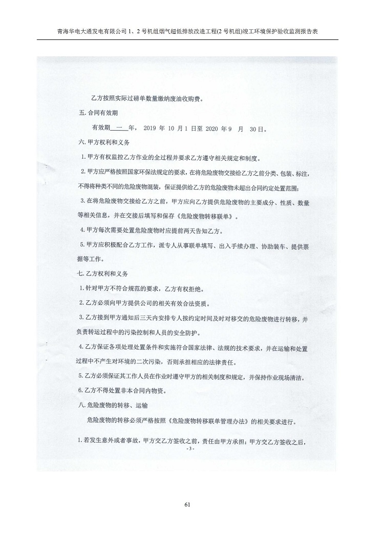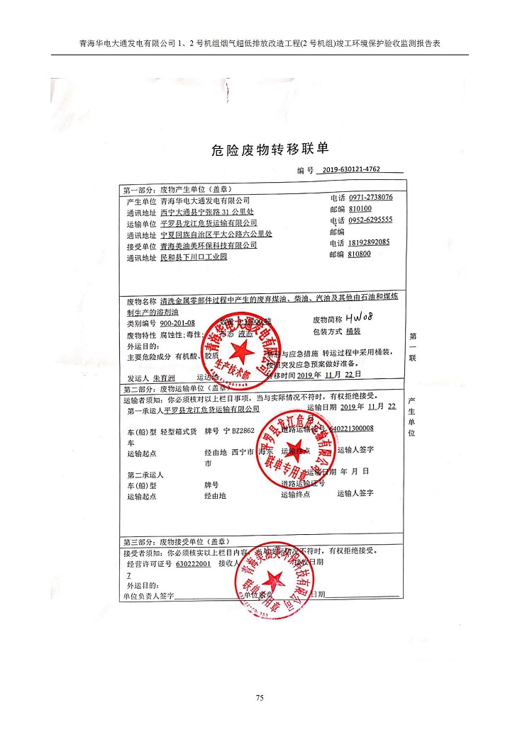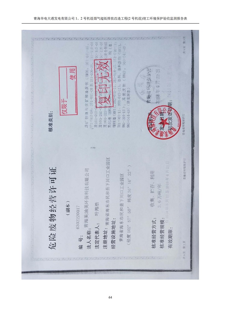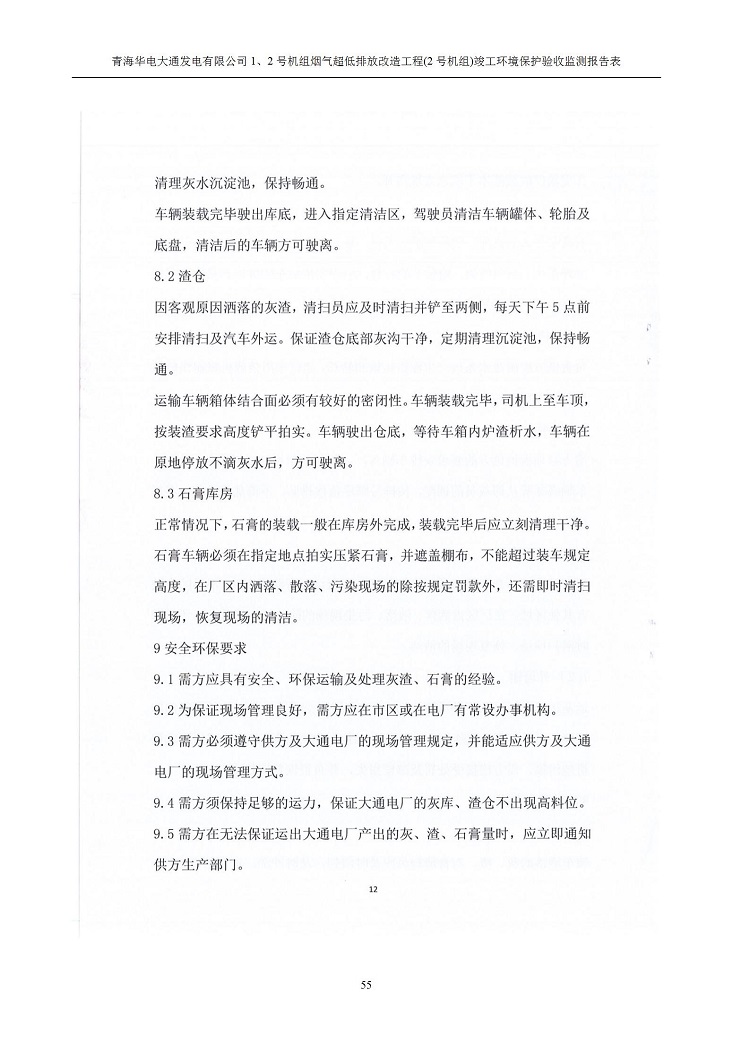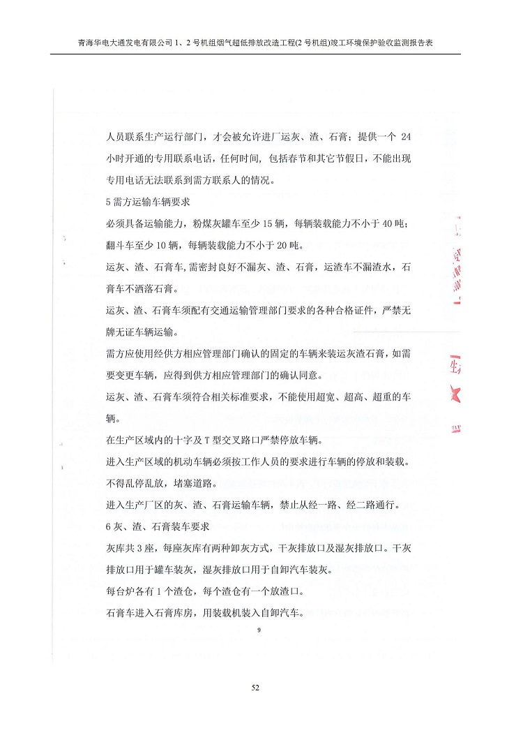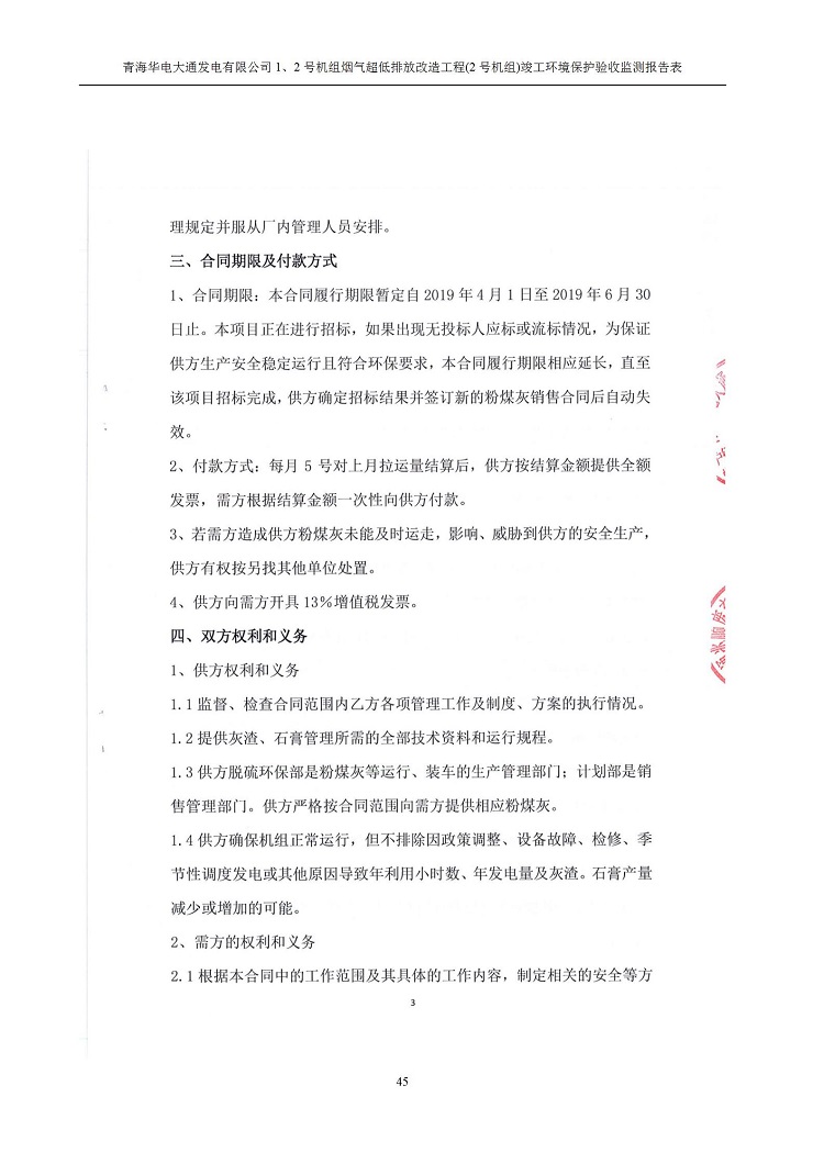 根據(jù)中華人民共和國國務(wù)院令第682號《國務(wù)院關(guān)于修改〈建設(shè)項目環(huán)境保護(hù)管理條例〉的決定》和《建設(shè)項目竣工環(huán)境保護(hù)驗收暫行辦法》(國務(wù)院令682號),青海華電大通發(fā)電有限公司1、2號機(jī)組煙氣超低排放改造工程(2號機(jī)組) (包括竣工環(huán)境保護(hù)驗收監(jiān)測報告表和驗收意見)公示如下。 一、項目名稱:青海華電大通發(fā)電有限公司1、2號機(jī)組煙氣超低排放改造工程(2號機(jī)組) 竣工環(huán)境保護(hù)驗收監(jiān)測報告表 二、地點(diǎn):青海省西寧市大通縣寧張公路31公里處 三、建設(shè)單位:青海華電大通發(fā)電有限公司 四、建設(shè)內(nèi)容:2號機(jī)組煙氣超低排放改造,2號機(jī)組改造內(nèi)容為脫硫系統(tǒng)保留原脫硫裝置作為一級塔,新建二級合金托盤塔串聯(lián)吸收塔;對原“1+2”電袋復(fù)合除塵器的一電場電源進(jìn)行改造,對布袋除塵器濾袋進(jìn)行更換;對原脫硝系統(tǒng)選擇性催化還原法(SCR)脫硝工藝加裝備用催化劑,每層催化劑增加聲波吹灰器,優(yōu)化SCR反應(yīng)器入口導(dǎo)流板。 五、聯(lián)系人:馬世敏 六、聯(lián)系電 話:0971-6515411 七、公示時間:二〇二〇年四月二十九日至二〇二〇年五月二十八日 公示期間,對上述公示內(nèi)容如有異議,請以書面形式反饋,個人須署真實姓名,單位須加蓋公章。