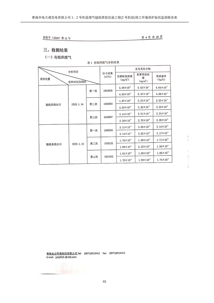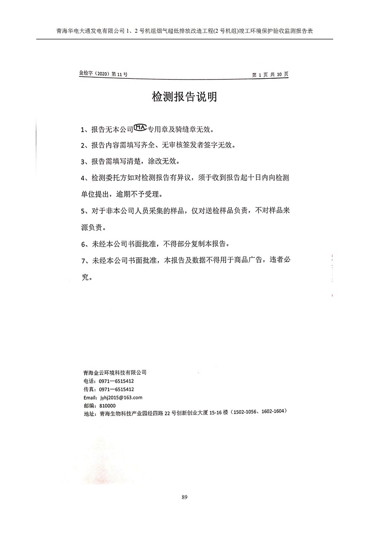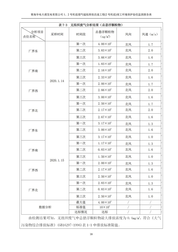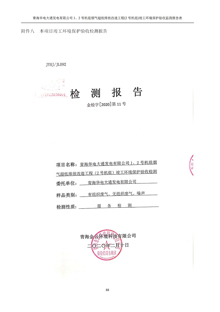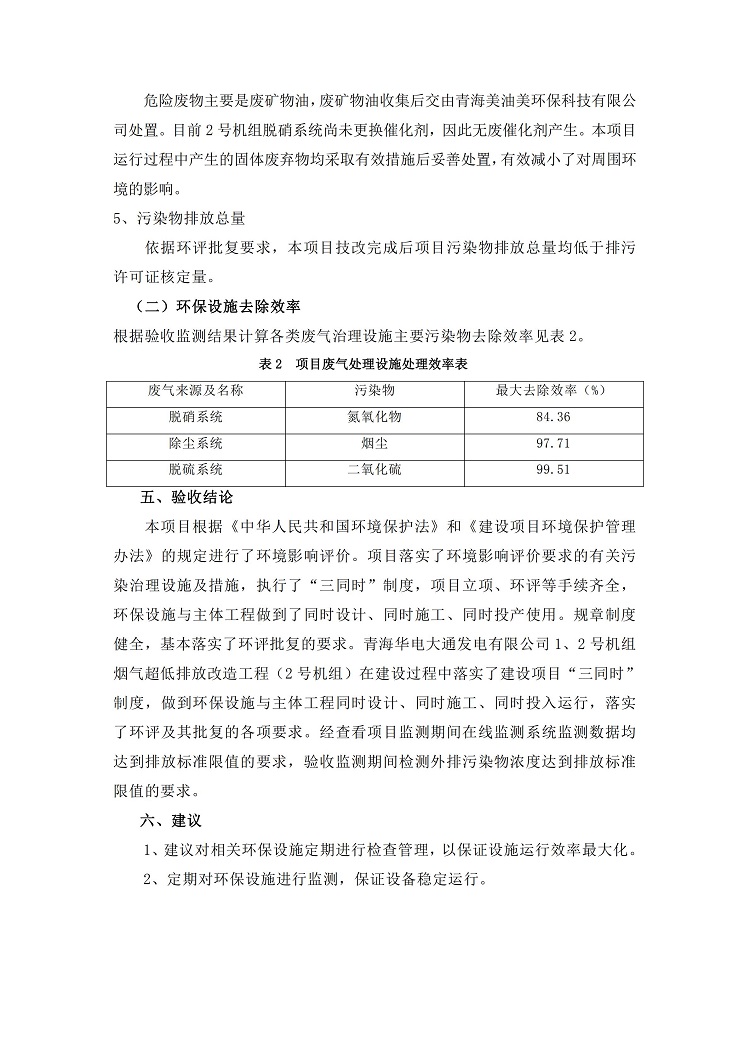 青海華電大通發(fā)電有限公司1、2號機(jī)組煙氣超低排放改造工程(2號機(jī)組) 竣工環(huán)境保護(hù)驗收監(jiān)測報告表公示發(fā)布日期:(2020-4-29) 點(diǎn)擊次數(shù):2444 |