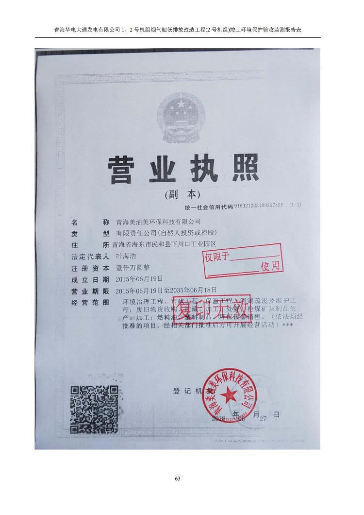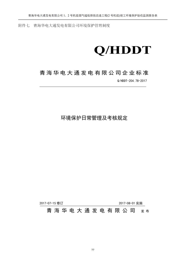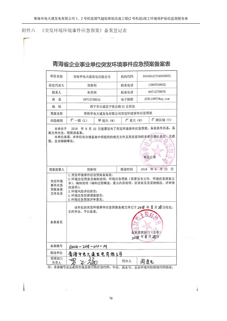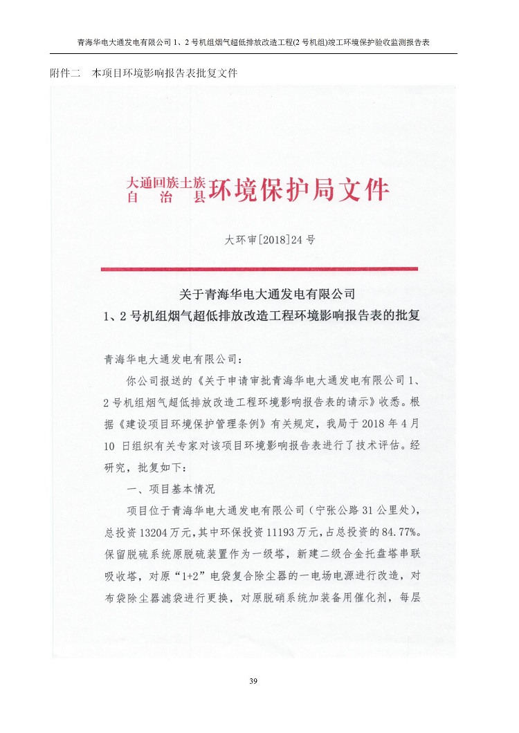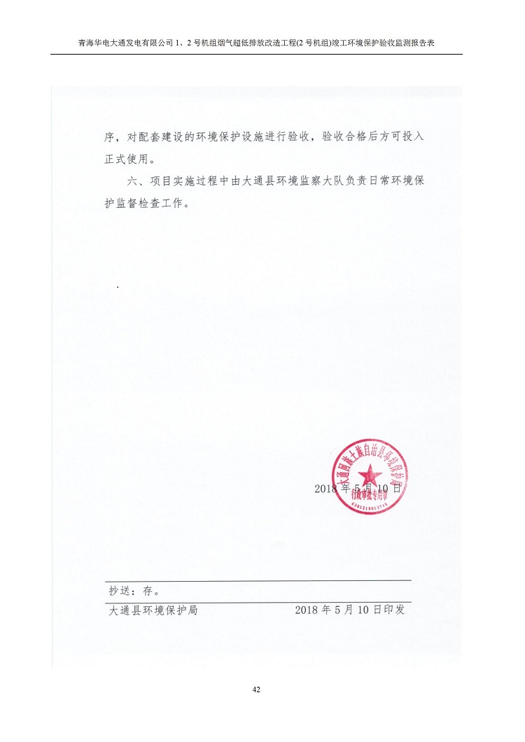 青海華電大通發(fā)電有限公司1、2號機(jī)組煙氣超低排放改造工程(2號機(jī)組) 竣工環(huán)境保護(hù)驗收監(jiān)測報告表公示發(fā)布日期:(2020-4-29) 點(diǎn)擊次數(shù):2444 |